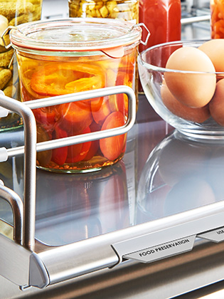 •冷藏儲存抽屜配備有緩衝滑軌系統。