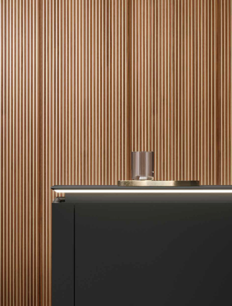 量身訂做的櫥櫃總是能給人大器優雅的氛圍,依照地形與需求,打造出獨一無二的家居空間,不浪費每寸角落,開放式層架及隱藏式收納櫃都能清楚分類,讓使用者能豪不費力的整理雜物也是打造時尚優雅的關鍵。另外,對於定制靜奢廚房來說,材質的選擇至關重要,建議選擇持久耐用的材質,不僅展現優雅氛圍,也能使美麗的廚房更耐用。