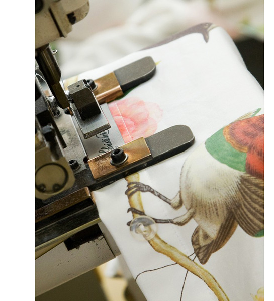 精緻的印染商品與布料,可提供300次清潔不褪色及不易起毛球的保證,並提供客戶量身訂作手工刺繡寢具的專業服務,為個人縫製獨一無二、深具個人風格的寢具美感經驗。