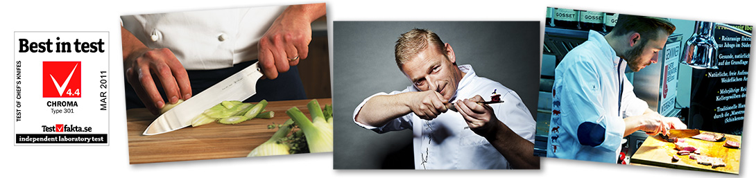 Chroma在歐洲是家喻戶曉的精品刀具品牌,對品質的要求自然無需多言。除了專業的主廚用刀,還生產各式各樣的磨刀石、廚房剪刀、烹飪配件。除了品質,Chroma對於刀,也有它獨特的哲學。。