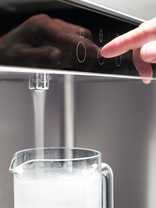 ●顯示屏上三個簡單的按鈕,輕鬆選擇即獲得所需的飲水(常溫、冰水、氣泡水)。