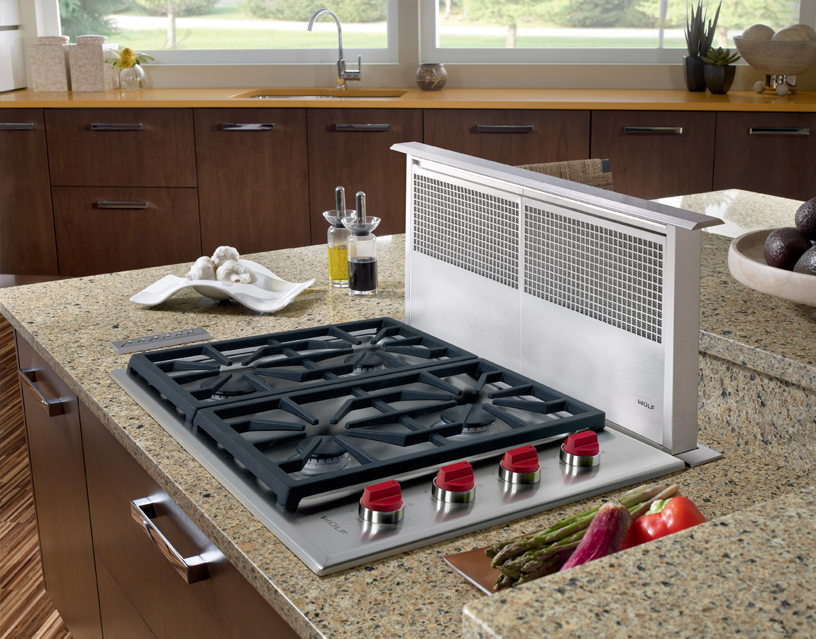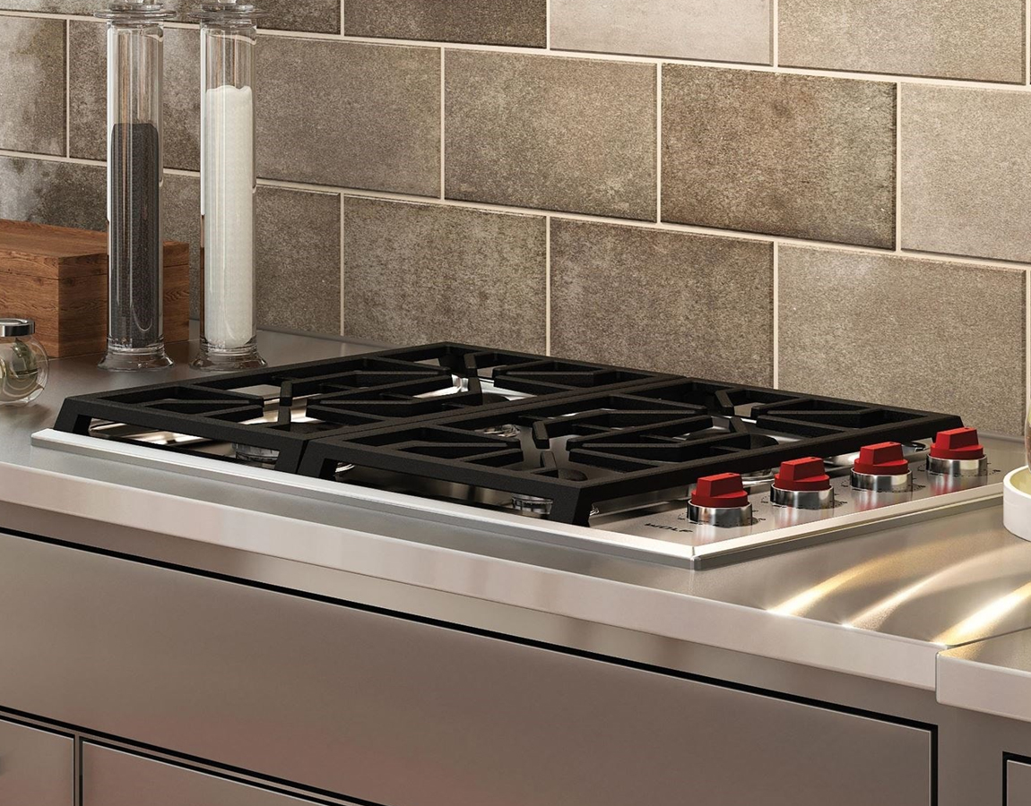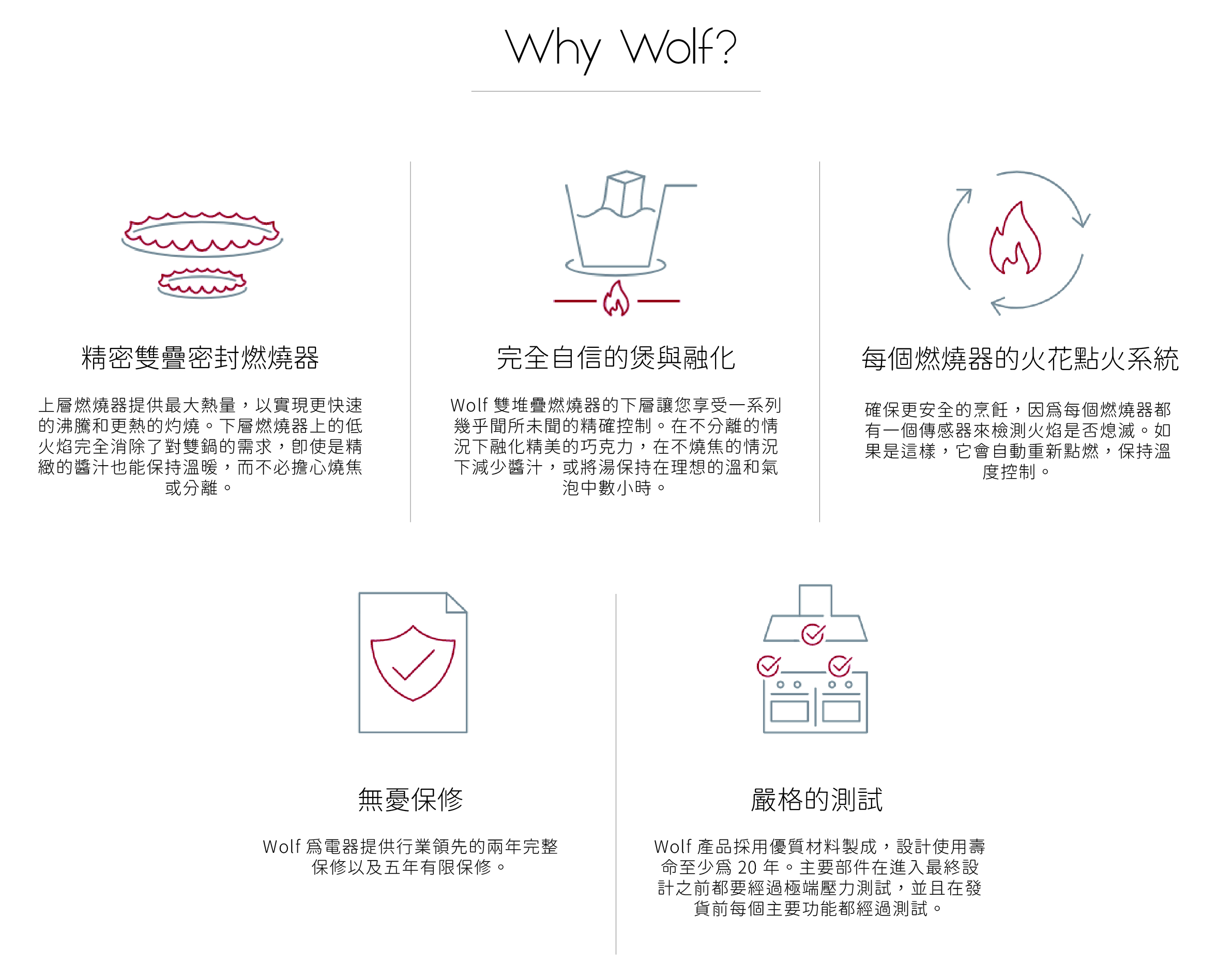 •標配 P 型紅色旋鈕(強烈的 Wolf 爐具識別)