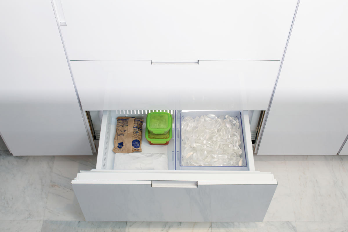 •上層冷藏櫃與下層兩抽冷凍櫃。
