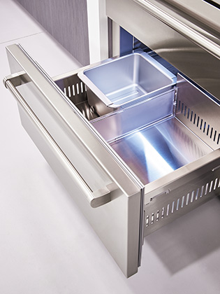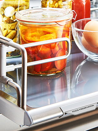 • 冷藏儲存抽屜配備有緩衝滑軌系統。