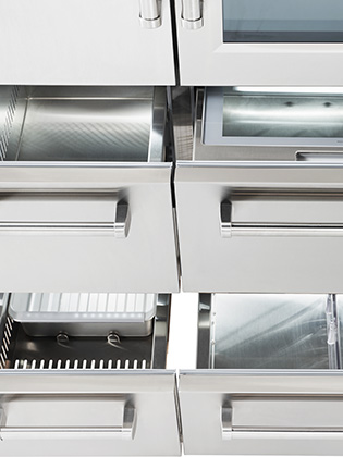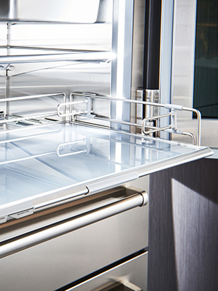 •冷藏儲存抽屜配備有緩衝滑軌系統。