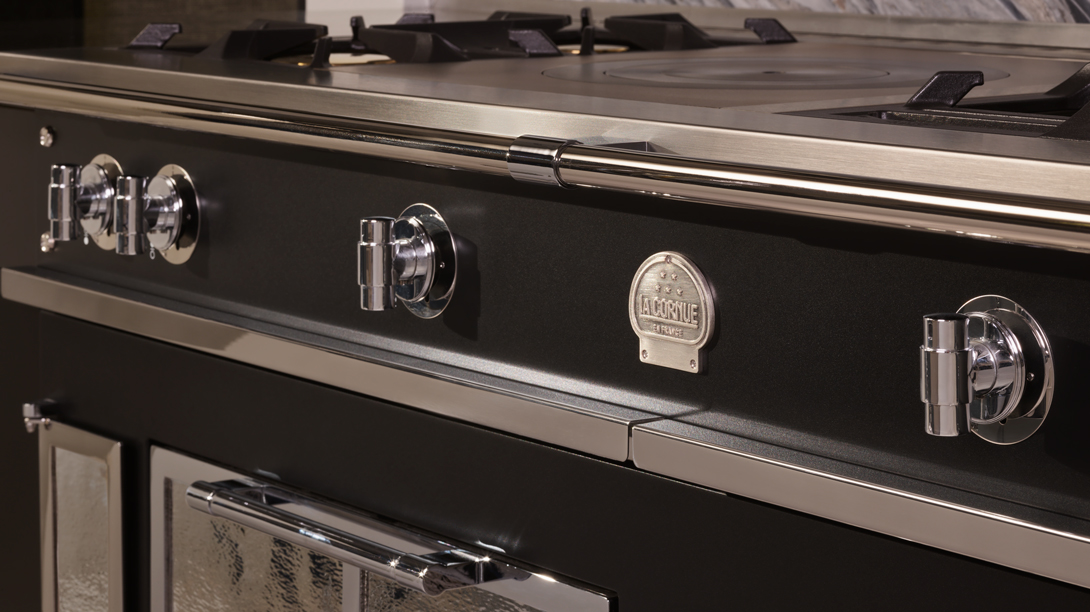 有別於現今廚具對於極簡風的偏愛,La Cornue的外觀設計保留廚房的傳統配備元素,如把手、開關等均不刻意隱藏;用材以鑄鐵、鋼材、實心黃銅、鎳和搪瓷為主,以金屬打造堅固工藝感,讓現代廚房也能呈現法式宮廷風格。