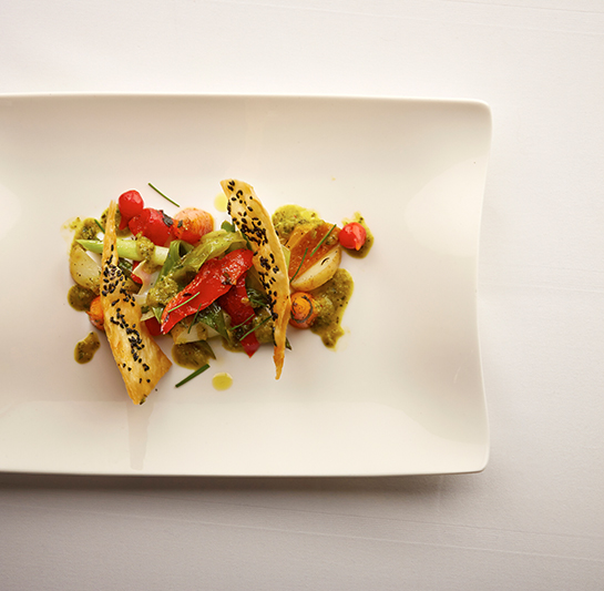 問起Larry喜歡的料理,他馬上提到肉質軟嫩的馬頭魚,「特色是鱗片可以食用,只要以手逆撥魚鱗,三度淋上熱油,即可將魚肉燙到九分熟,搭配墨魚麵、酥炸起司,由淡而濃的層次逐步帶出海洋風味,是一道很受歡迎的料理。」聽到這裡,忍不住追問Larry近期的作品,他說:「前不久我在一場台灣的宴客活動中,做了一道烏魚子麵。我將烏魚子以五十度烤十八個小時,完全去除水份,然後刨成粉末灑在麵上,作為烏魚子片和麵體味道融合的媒介。客人都是第一次吃到這樣的烏魚子麵,紛紛大呼驚艷。」經過Larry的妙手,習以為常的材料也能化身米其林等級的美食。