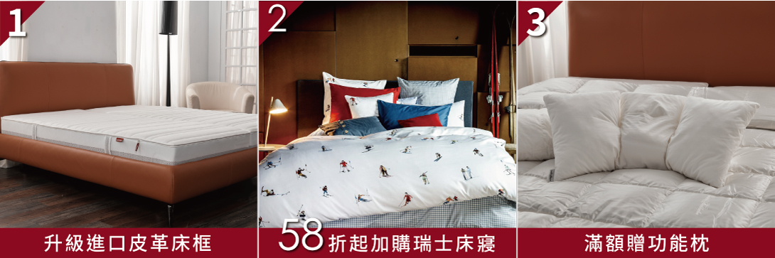 內含固定床x2、H4床墊、金屬擋桿、金屬框、瑞士精品寢具雙人床包x1