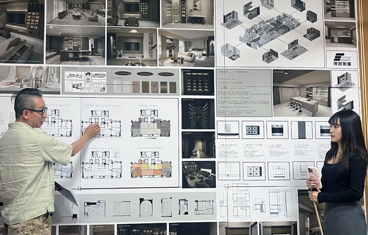 為了讓設計不只是紙上談兵,德廚開放了展示中心,帶領學生步入真實的觸感世界。在專業的導引下,學生們觀察材質的質地、理解設計背後的邏輯,讓品牌理念不再是生硬的文字,而是化作設計圖紙上的一抹靈魂,建立起與國際競賽接軌的專業深度。