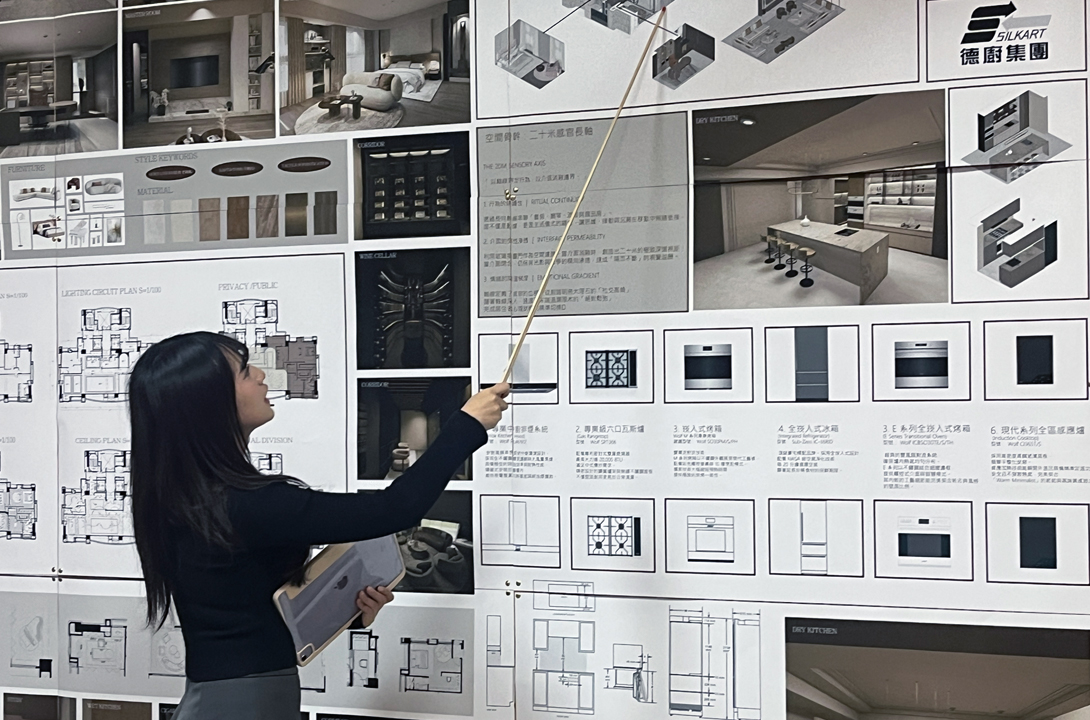 金獎得主馮心榆感性分享: 「這次課程讓我學到如何從品牌與使用者的角度思考設計,而不只是做空間配置。透過參訪德廚集團展示中心,實際接觸到產品,我更理解高端廚房在生活中的角色,也學會如何把家電轉化為空間設計的一部分,對未來進入設計產業非常有幫助。」