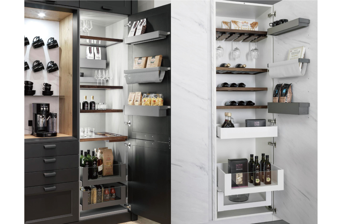 最新的現代廚房理念都是關於多功能,以及客制化的多元設計。而推關門的技術進步意味著可以在壁櫃和底櫃中省去把手。