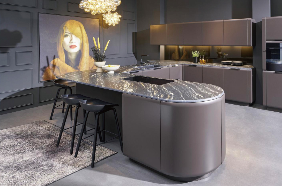 圓角,圓弧,拱形設計已經在室內設計出現很久,這種設計趨勢迄今為止主導了家具設計及軟裝設計。現在,作為家中的核心的廚房也開始參與進來,廚房經典的 「硬」 表面變得更柔軟、更曲線。彎曲的中島邊緣和傳統硬直角廚房之間的對比是戲劇性的——它徹底改變了廚房設計觀感,舒適的曲線和柔和的圓潤邊緣為空間帶來柔和的平靜,同時增添了一絲精緻感。