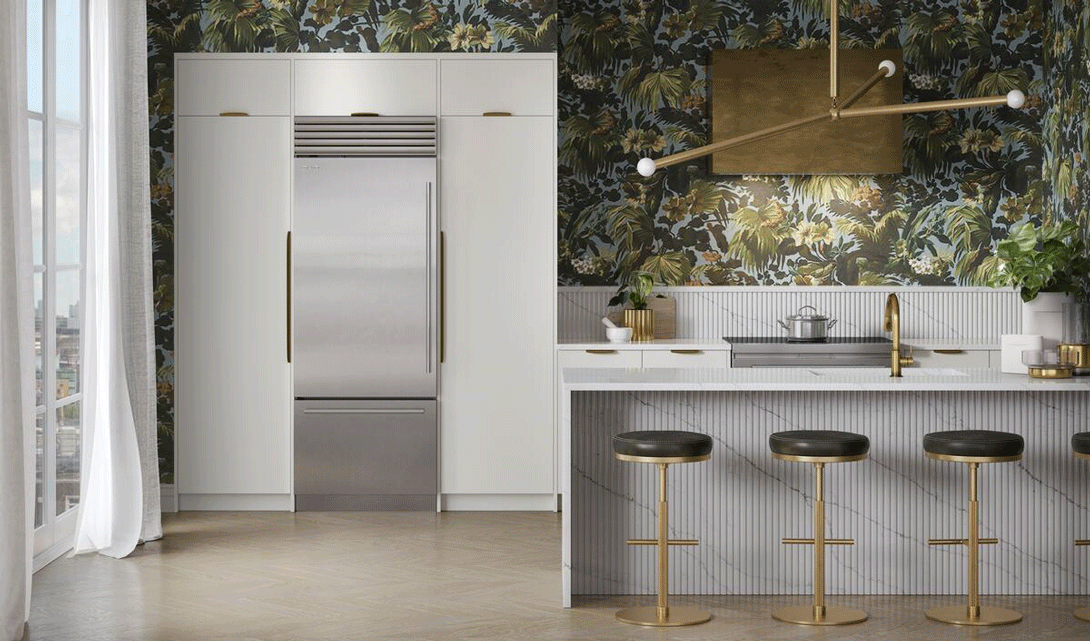 使用豪華的壁紙、織物或彩繪圖案是將特殊顏色和圖案無違和融入廚房設計的方法,在廚房中可使用各種壁紙創意,但只要確保選擇的任何牆紙都覆蓋著鋼化玻璃、有機玻璃或保護漆。這樣就能確保美麗的壁紙能一樣實用且易於清潔。或者,將壁紙夾在兩片玻璃之間,以保持壁紙完全無濕氣,也是常見的作法。