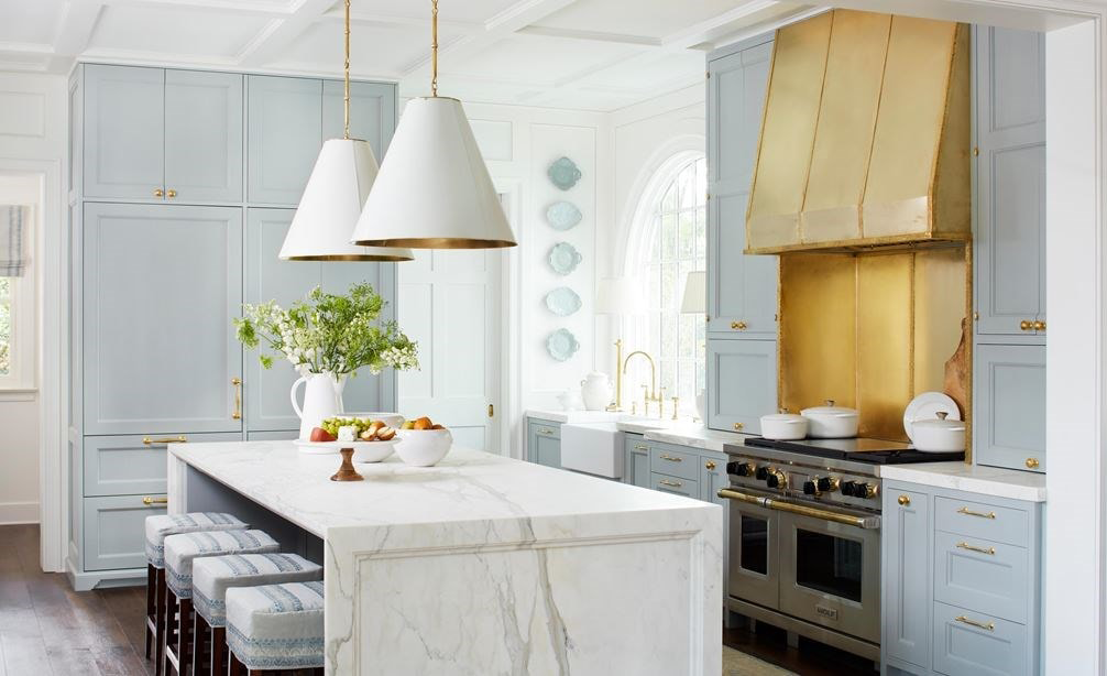 豐富的色彩在室內設計中佔有重要地位,歡快色調的瓷磚為近幾年的設計趨勢,使用在廚房中可營造出活潑前衛的氛圍,單色廚房加上對比色圖案或色調,在廚房也能能展現室內設計亮點。好比純白的廚房加上淡藍色圖騰壁磚,法式廚房的悠閒氛圍油然而生。《優雅法式廚房的6種設計元素》