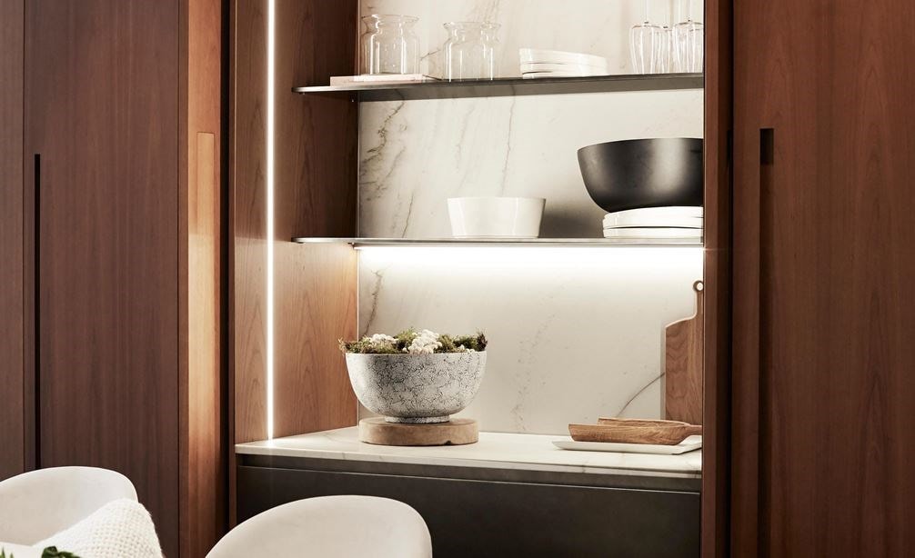 氣勢磅礡的大理石中島,設備齊全的家中爵士酒吧,可容納多人的派對式開放式廚房,都需要大坪數基礎來設計,受限於預算和坪數條件尺寸,許多豪奢感的設計無法以最完美的樣貌呈現,但專家整理了幾項技巧,雖然無法呈現富麗堂皇,但能夠有效的將小坪數廚房打造出低調奢華感。