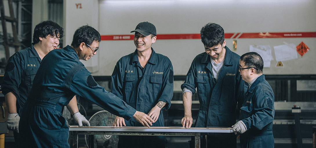 看著陳彥安與師傅的諸多磨合,陳昱誠從介入調節到放手處理,中間歷經多次與自己的對話,他提到,「我後來發現,兒子會犯的錯其實都跟父母很像,責備只會加深裂痕,所以要讓他自己去處理、去碰撞。」於是,陳彥安以輔助大家的方式加入團隊,並逐步注入新穎思維,在接到具有挑戰性的設計時,也會徵詢老師傅意見,表達希望一起嘗試的意圖,「我覺得特殊專案能夠帶給老師傅自我價值的認定,更能藉由這些作品拉抬品牌,讓大家知道,台灣也有很棒的不銹鋼,進而凝聚所有人的向心力。」