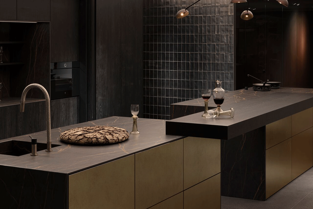 廚房檯面的主色調是影響空間色彩的主要關鍵之一,選用淺色檯面,例如白色檯面帶有淡淡的大理石紋理,能增加空間的視覺印象。淺色也可以選用淡黃色、淺棕色甚至金色,這些都是廚房檯面令人印象深刻的元素。另外,廚房後擋板的設計也可以改變空間氛圍,安裝鏡面後檔板是近年的流行趨勢。