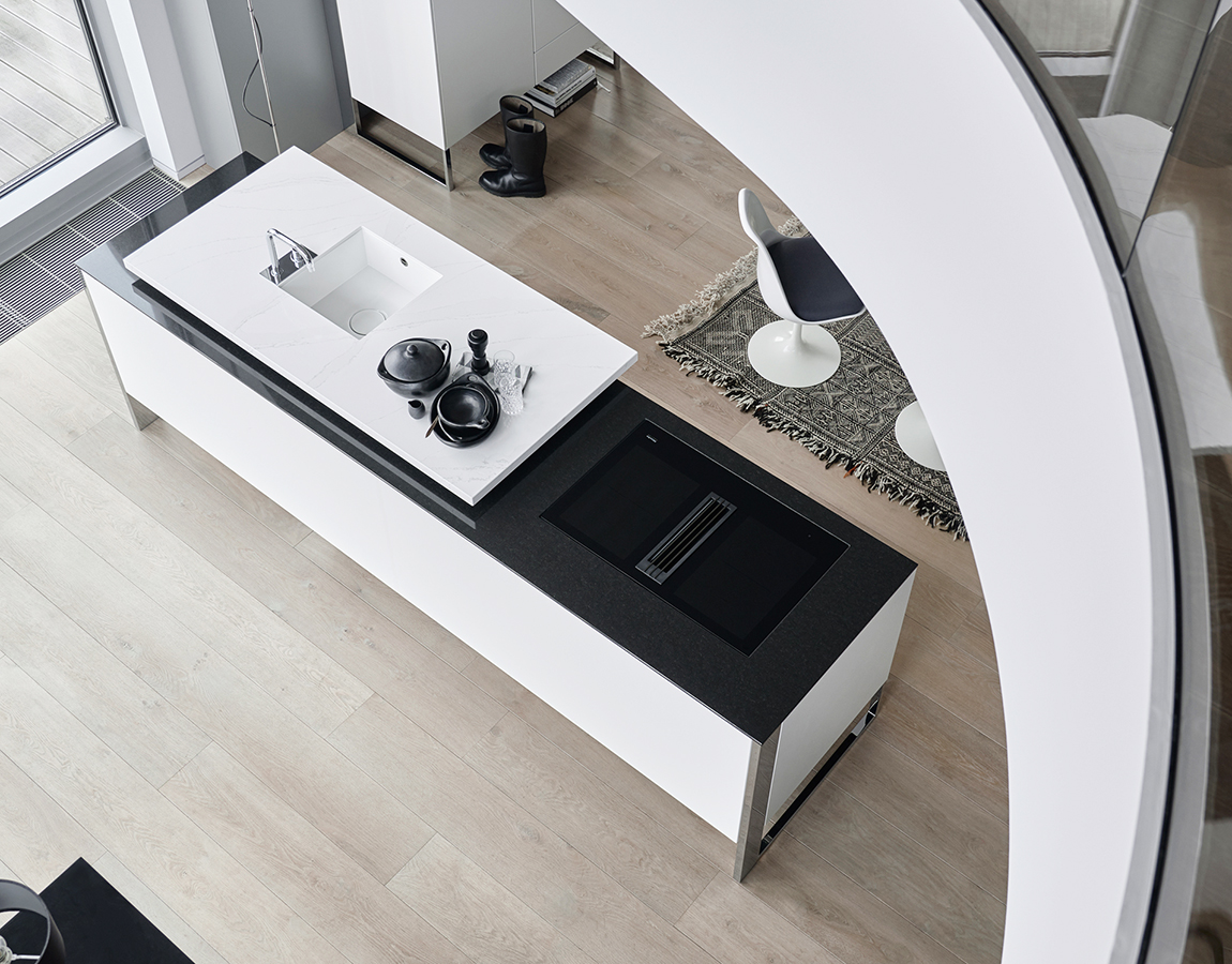 使用 +VENOVO系列,讓廚房空間得到了徹底重組。 垂直且分層的,而在平滑檯面的呈現上,可作為生活和烹飪之間的連接。